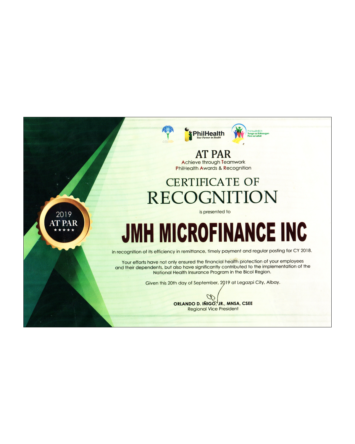 JMH Microfinance, Inc. (JMH) formerly J.M Honrado Foundation, Inc. (JMHFI) was officially registered on October 7, 2004, under SEC Registration No. 29482 with the goal of alleviating poverty and promote socioeconomic development in the region.